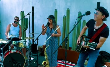 HORIZON is a high-energy, genre-bending Indie Funk-Rock-Jazz trio delivering a fresh and unforgettable sound. Fronted by French-American singer-songwriter Yves LF Giraud, with the soulful stylings of flutist/saxophonist Linda Gimble Baker and the rhythmic fire of drummer Isaac James Kimbro, HORIZON weaves together infectious grooves, rich melodies, and cinematic storytelling. Their original music takes listeners on a ride through lost loves, deep space, time warps, and the raw beauty of the human experience — all wrapped in a sound that's both timeless and totally their own.